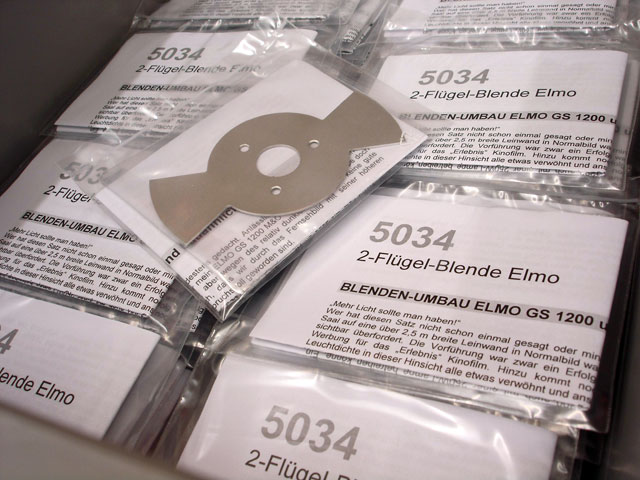 Deutlicher Lichtgewinn bei Projektion mit 24 B/Sek. bzw. 25 B/Sek. (um 33% verkürzte Dunkelphase zwischen den Transportphasen). Einbauanleitung liegt bei. Es ist handwerkliches Geschick und Werkzeug erforderlich. Die Blenden werden präzise per Laserstrahl geschnitten, von Hand entgratet und erhalten ihr abschließendes Finish durch Glasstrahlen. Jedes Exemplar wird vor dem Verpacken optimal gerichtet und auf Rundlauf überprüft.