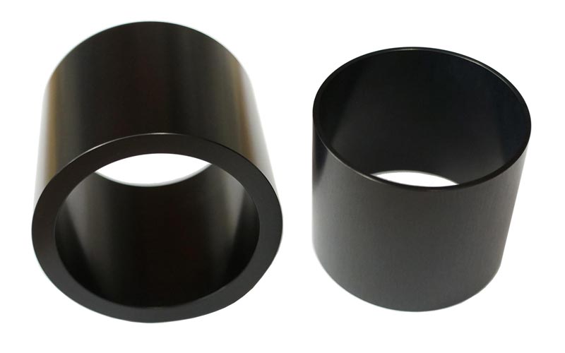 Hartaluminium, präzisionsgedreht, poliert und seidenmatt schwarz eloxiert.